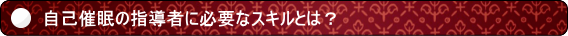 さらに、自己催眠の指導者は、そのクライアント独自の催眠の入り方を探し出す技術も身に付けなくてはいけません。クライアントが自己催眠に入るためのもっとも適した催眠導入法の組み立てをしてあげることができて初めて自己催眠の指導者と言えるのです。